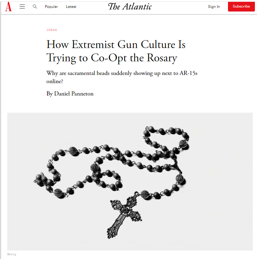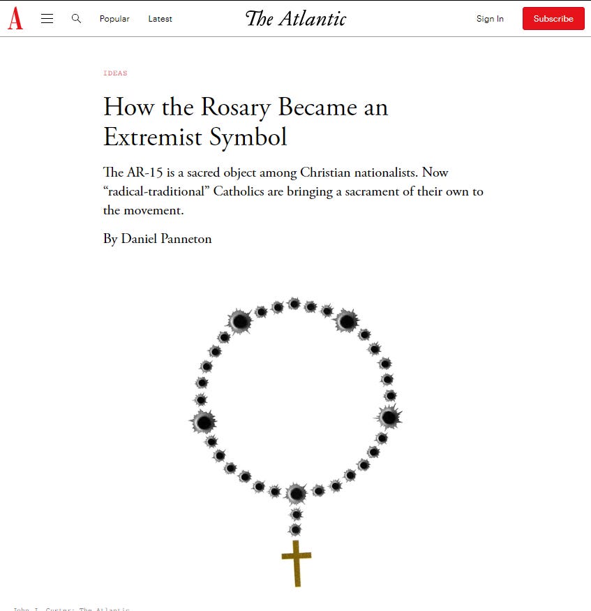 The Atlantic - How the Rosary Became an Extremist Symbol - https://www.theatlantic.com/ideas/archive/2022/08/radical-traditionalist-catholic-christian-rosary-weapon/671122/