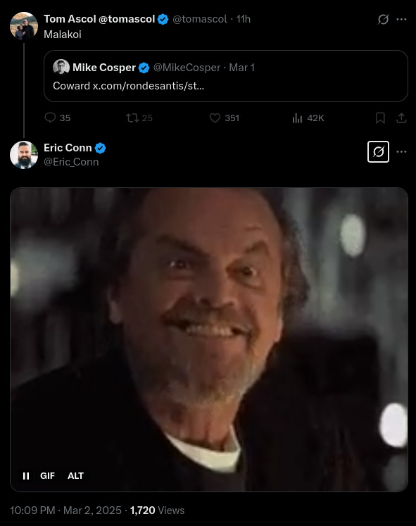 This slur was met with the approval of Eric Conn, who, ironically, is the Pastor of Counseling and Leadership Development at Refuge Church in Utah. Conn is not only known for his consistent reviling behavior online (of which I have been the target of several times), but for his laundering of neo-Nazi tropes into reactionary Christian discourse. Therefore, it’s unsurprising that Conn would approve of Ascol’s disqualifying sin; just two days ago he despicably reviled Kirk E. Miller, a theologian who works for the popular Bible software company, Logos.